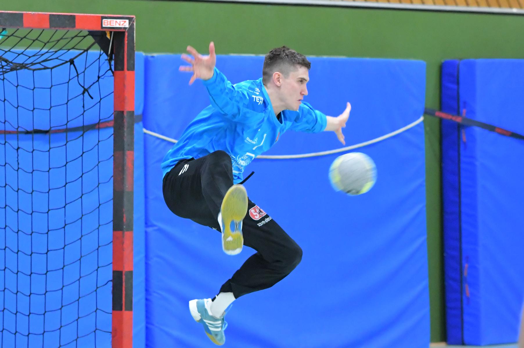 „Wir müssen die einfachen Fehler vermeiden und einfacher spielen“. Die Worte von Trainer Jörg Ebermann im Vorfeld des Spiels hallten den Spielern wahrscheinlich noch nach, als sie in die Partie gingen. Denn der Start der Partie gehörte eindeutig den Hausherren. Auch das Ergebnis sagte dies – mit einer kleinen Einschränkung. Denn das deutliche 5:2 war eigentlich viel zu wenig. „Wir hätten deutlicher führen müssen“, befand auch Trainer Ebermann. Immerhin waren hier schon fünfzehn Minuten gespielt. Das hieß aber auch, dass die Abwehr von der ersten Minute on Fire war. Mit einem halben Dutzend Paraden in den ersten zwanzig Minuten hatte Keeper David Herz einen großen Anteil daran. Seine größte Tat vollbrachte der Herrenberger Schlussmann aber etwas später. Zu einem Zeitpunkt, als die Gäste die inzwischen eingekehrte Unsicherheit in den Angriffsaktionen der SG H2Ku in ein eigenes 9:8 verwandelt hatten, hielt David Herz erst einen Strafwurf von Felix Wiederhöft und danach gleich dessen Nachwurf. Aber auch diese Paraden konnten nicht verhindern, dass die Hausherren mit einem 9:12 in die Pause gehen mussten.