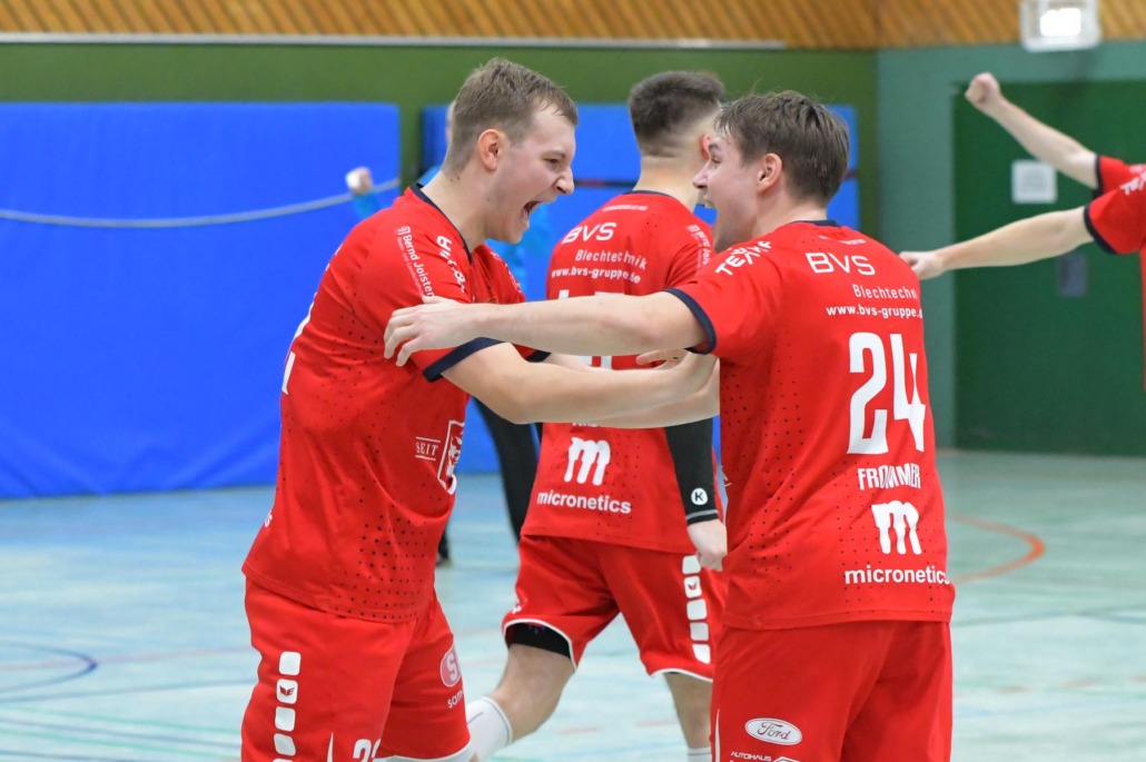 Dieser Optimismus sollte sich auch später bewahrheiten. Die ersten Akzente setzten allerdings weiter die Gäste. Doch nach dem Ehinger 18:16 zündeten die H2Ku-Männer den Turbo. Mit einer konsequenten Abwehrarbeit und einer effizienten Offensive konnten die Gastgeber das Spiel mit einem 7:1- Lauf bis zum 23:19 drehen. Vorne spielten sich Kenneth Stiegen, Moritz Werner, Nik Wittke und auch Lukas Krebs in den Vordergrund. In der Defensive lieferte die Defensive insgesamt eine beeindruckende Leistung ab, wobei gerade der Halbverteidiger Tim Frommer und Finn Böhm aus dem Innenblock noch ein Sonderlob von Trainer Jörg Ebermann nach Spielende einheimsen konnten. Spannend wurde es dennoch einmal, als die Gäste sechs Minuten vor dem Ende auf 25:26 verkürzen konnten. Doch diesmal ließen sich die Gastgeber nicht aus dem Konzept bringen. „Wichtig war, dass wir heute cool geblieben sind“, konnte sich Trainer Ebermann auf der Pressekonferenz freuen. Zunächst sorgten Moritz Werner und Luca Kälbly für das erlösende 28:25, später machte Oliver Sudar mit zwei blitzsauberen Durchbrüchen für das 30:26 den Sack zu.