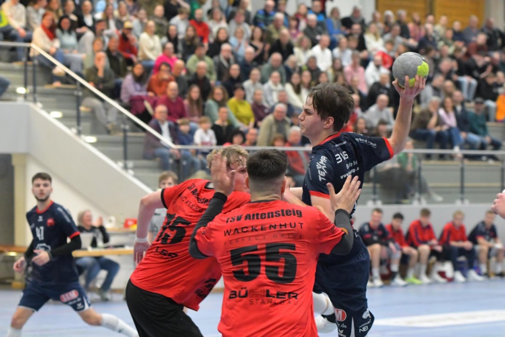 So war es nur eine Frage der Zeit, bis die Altensteiger Oberwasser bekommen sollten. Erschwerend kam hinzu, dass der überzeugende Torhüter David Herz mit muskulären Problemen im zweiten Abschnitt für zwanzig Minuten vom Parkett musste. Sein Vertreter Nico Sauer enttäuschte zwar keineswegs, dennoch nutzten die Hausherren diese Phase zur ersten Führung zum 22:21. Noch einmal konnte der 13-fache Torschütze Nik Wittke ausgleichen, dann zog der TSV mit vier Treffern in Folge vorentscheidend auf 26:22 davon. Geschlagen gaben sich die H2Ku-Männer noch nicht, zweimal noch gelang der Anschluss auf nur zwei Treffer Rückstand. Doch beide Male konnte das Momentum nicht genutzt werden. Insgesamt fanden gleich drei Mal Würfe auf das durch die Altensteiger Überzahl verwaiste Gehäuse den Weg nicht ins Tor. „Wir haben uns im Angriff in der zweiten Halbzeit völlig verunsichern lassen“, analysierte Trainer Tim Gauß enttäuscht nach dem Spiel. Das 30:27 durch Paul Wagner war dann zwei Minuten vor dem Ende die endgültige Entscheidung.