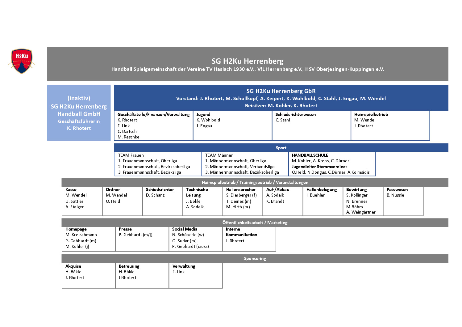 Weiterhin sind die drei Stammvereine gleichberechtigte Gesellschafter der zur Saison 19/20 neu gegründeten SG H2Ku Herrenberg Handball GmbH und haben Katja Rhotert als Geschäftsführerin bestimmt.